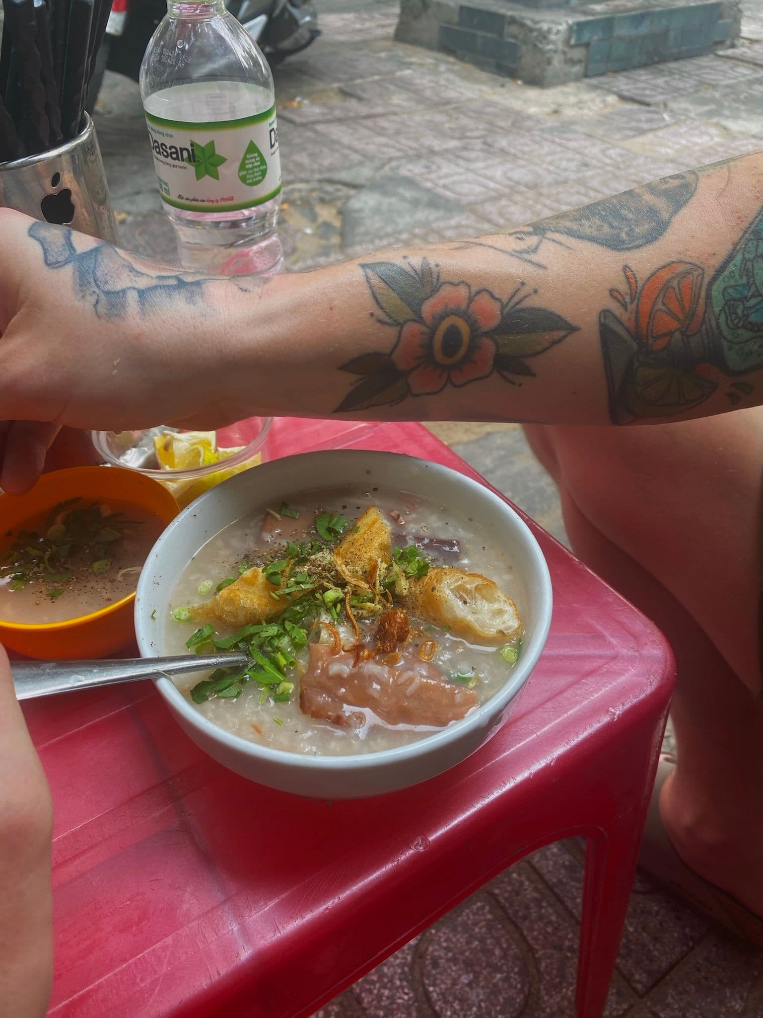 For lunch I followed the footsteps of Anthony Bourdain and visited a little whole in the wall restaurant to have a bowl of Cháo mực (squid soup).