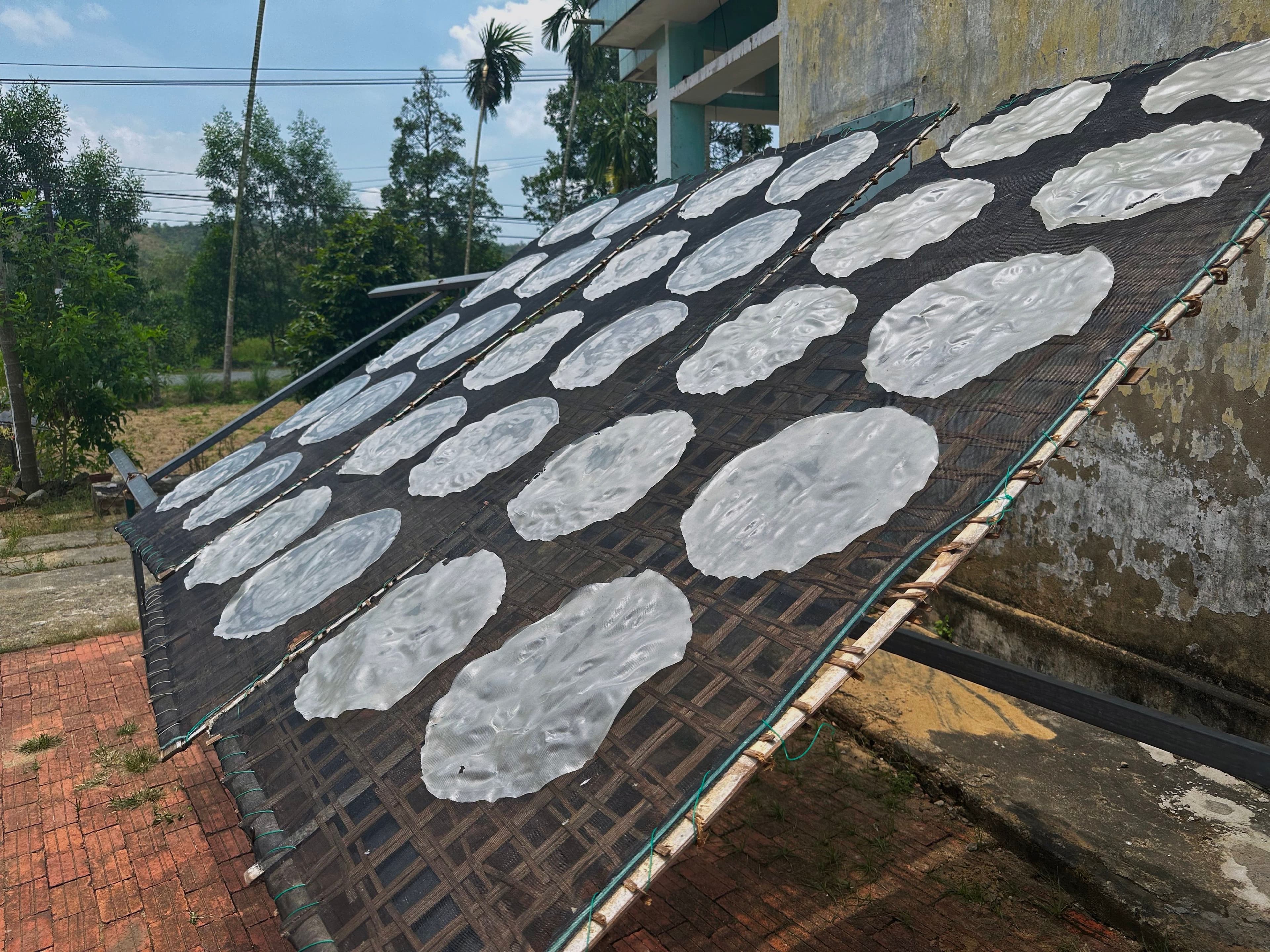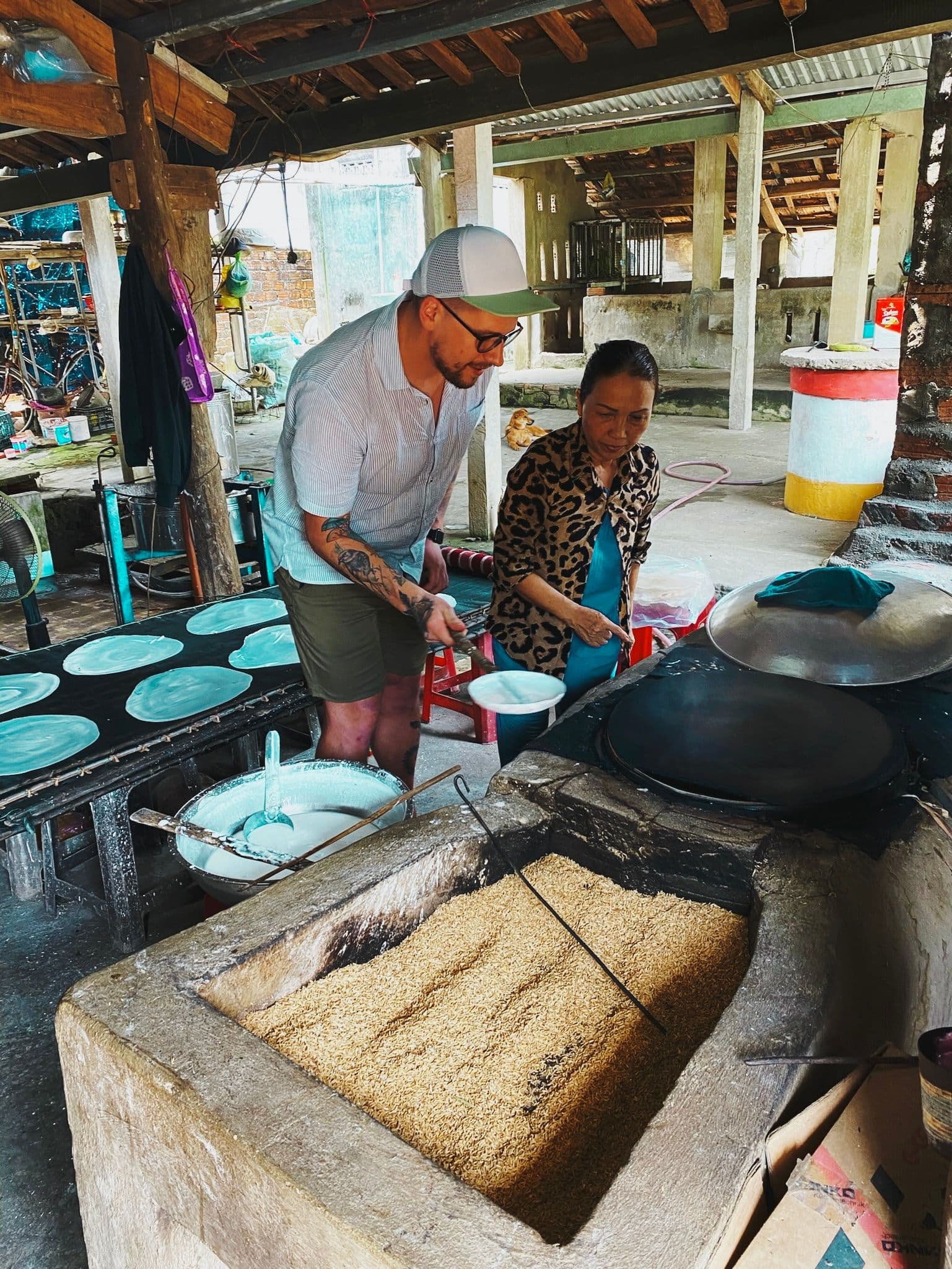 On the way home we visited a lady who showed us how to make rice paper. Then we all got to have a go.