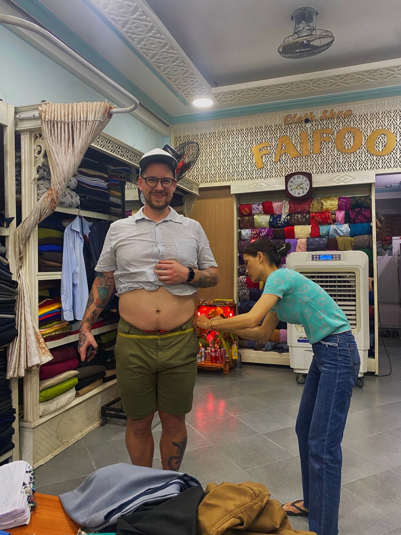 In the evening we visited one of the many tailors in town. I got a pair of shorts and a shirt made. Beth chose a jumpsuit.